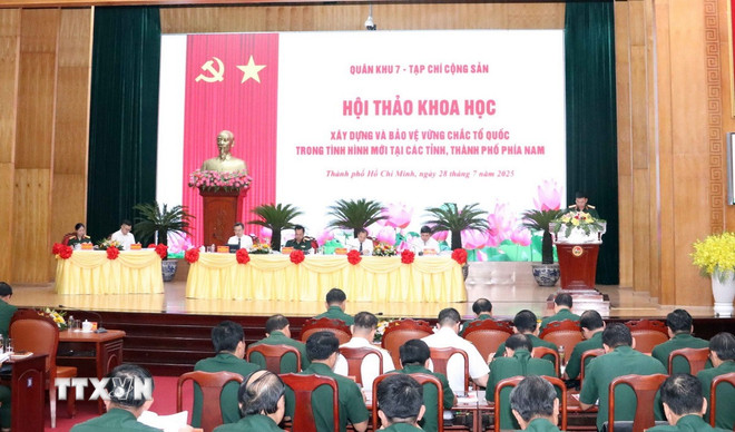 Chiều 28/7, tại Thành phố Hồ Chí Minh, Bộ Tư lệnh Quân khu 7 và Bộ Biên tập Tạp chí Cộng sản phối hợp tổ chức Hội thảo khoa học với chủ đề "Xây dựng và bảo vệ vững chắc Tổ quốc trong tình hình mới tại các tỉnh, thành phố phía Nam."
