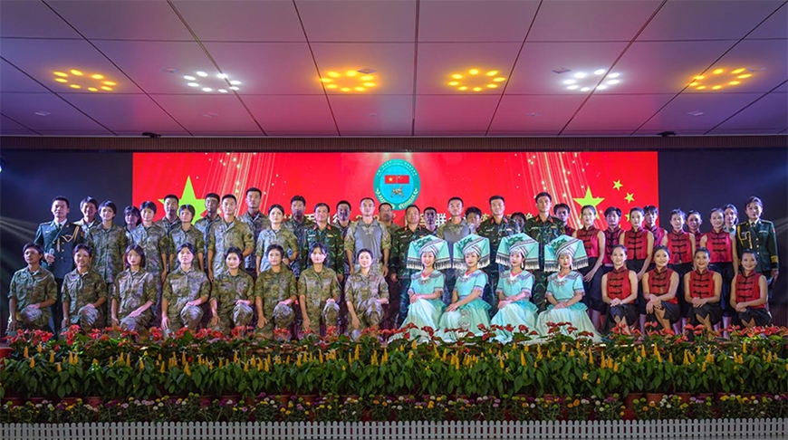 Bộ chỉ huy Lục quân Việt Nam – Trung Quốc với nghệ sĩ Đoàn Văn công cùng diễn viên văn nghệ quần chúng thuộc bộ đội Lục quân hai nước.