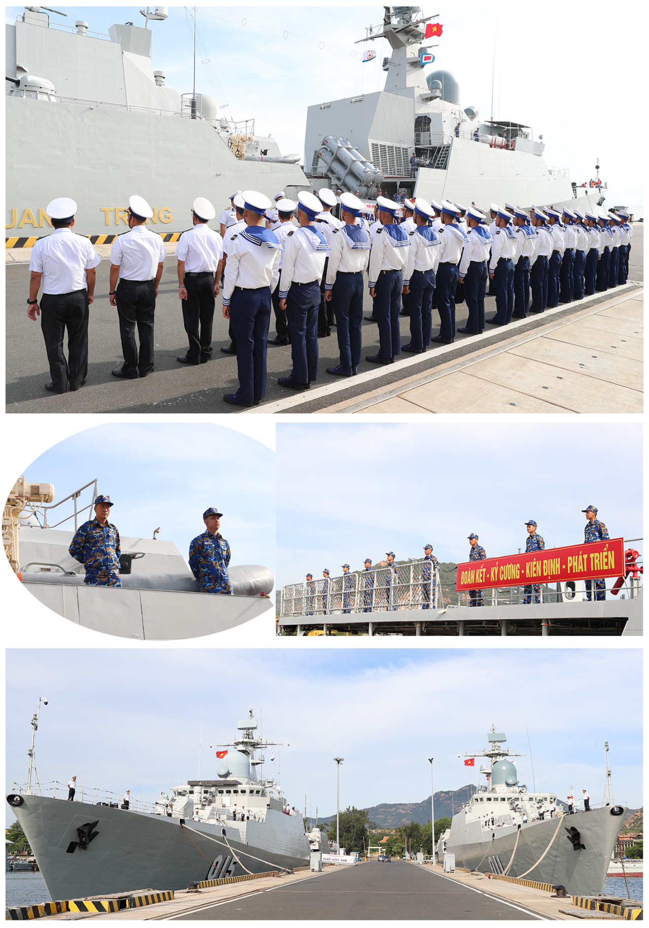 Đội hình cán bộ, chiến sĩ và các tàu của Lữ đoàn 162 tiễn đoàn tại cảng